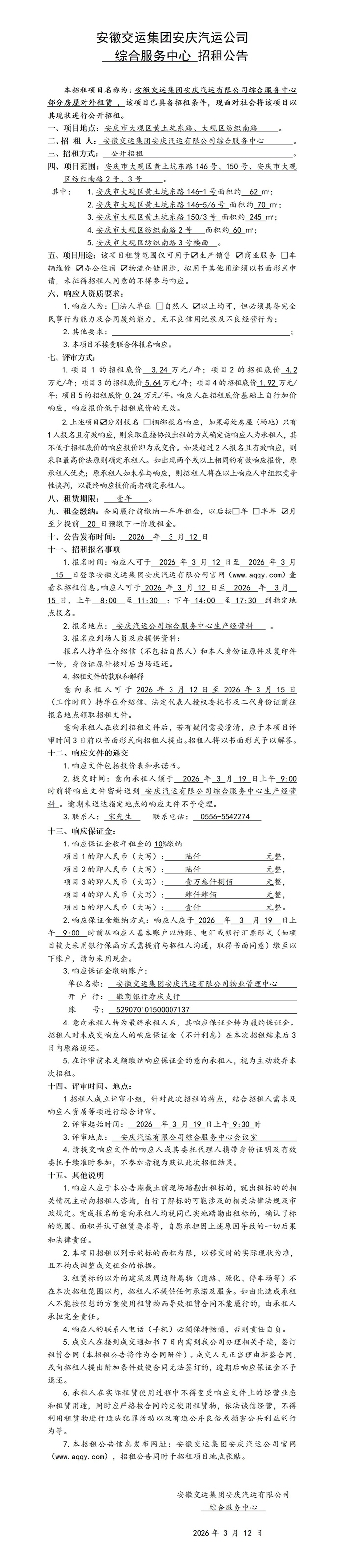 綜合服務(wù)中心部分房屋對外租賃公告