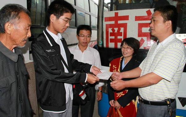太湖分公司領(lǐng)導(dǎo)得知姐弟倆的情況后,隨即與考生所在鄉(xiāng)村取得聯(lián)系。決定從公司緊張的辦公經(jīng)費(fèi)中解決姐弟倆大學(xué)期間的路費(fèi)。9月10日是弟弟陳先義報道的日子,太湖分公司領(lǐng)導(dǎo)曹全龍同志代表太湖分公司全體汽運(yùn)人親手將兩張?zhí)聊暇┑能嚻彼偷疥愊攘x同學(xué)手中,并鼓勵他們樹立信心,正確面對暫時的困難,好好學(xué)習(xí),以過硬的本領(lǐng)回報社會。受助大學(xué)生陳先義對太湖分公司的無償援助表達(dá)了感激之情。