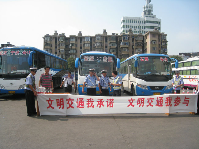 9月4日,市客運分公司與交警支隊二大隊在安慶汽車站停車場內開展“文明交通我承諾,文明交通我參與”駕駛員簽名活動;顒邮紫扔山痪ш牰箨牰嘘牀钪笇T宣傳5種易發(fā)生道路交通事故的不良及違法駕駛行為,楊指要求駕駛員駕駛車輛做到:不超員、不超速、不疲勞駕駛、不酒后駕駛、不無證駕駛,做文明禮讓安全行車的文明駕駛員;隨后進行了駕駛員簽名,市客運分公司110名未當班的駕駛員參加了本次簽名活動。