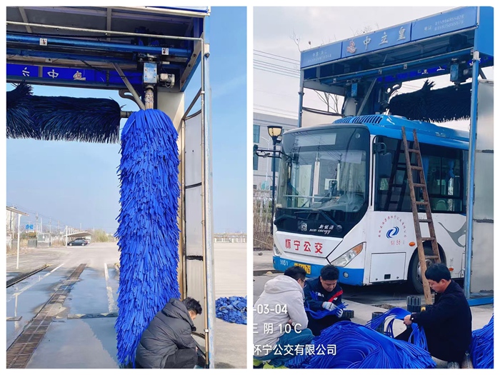 2026年3月4日,懷寧公交停保場內(nèi)呈現(xiàn)出一派繁忙而有序的景象,公司技術(shù)人員與洗車機廠家售后團隊緊密合作,成功完成了大型洗車機轉(zhuǎn)軸毛刷的全面更新工作,為文明衛(wèi)生城市建設(shè)再添新動力。